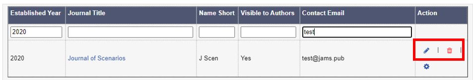 You can change the Journal Settings at any time by selecting the pen icon. You can also delete the journal by clicking the bin symbols. Both are found in the ‘Action’ column.
