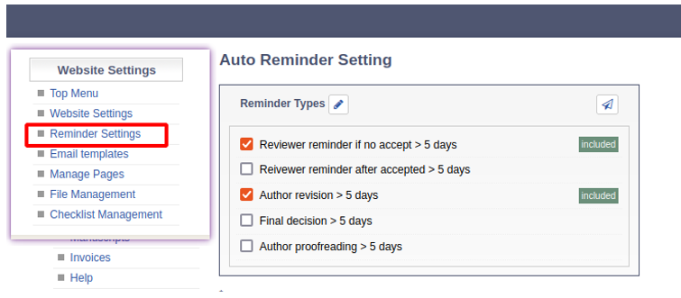 If this feature is enabled, the Managing Editor can define the Reminder Settings to customisable durations to fit within the journal’s workflow. The author or reviewers will be automatically reminded to complete the task that they have been assigned.