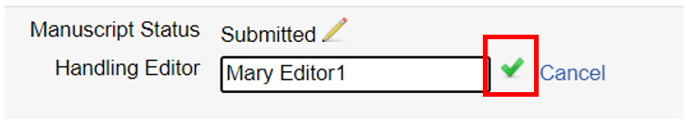 To change or assign the Handling Editor (only the Journal Editor or Publisher may do this), the editor’s name should to be added in the ‘Handling Editor’ column, or at the top of the manuscript page. The Journal Editor will be able to see how many manuscripts the Handling Editor is currently processing.