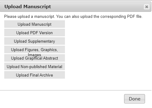 At the top of the manuscript page, find the ‘Upload Manuscript’ button.
